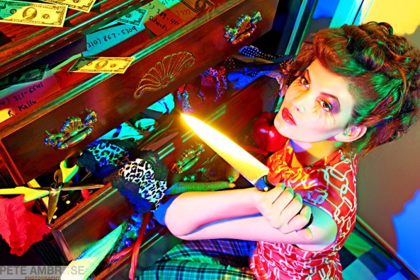 This sub-series undoubtedly lays the foundation for the rest of the project. Single-model, straight photographic editorials bent on creating a world of surreal metaphor using object, apparel and location that couldn’t be more visceral or real. Plays on literature, art, pop culture, religion, society, and images of female beauty are dipped in dark whimsy and blossom in full color, notwithstanding the surrounding neutral palettes and disjunctive textures. The foundation for conceptual work brought forth with low cost, in-camera and on-set ingenuity is rolled out with this series of images that hint and tease the viewer with what is the acceptable emotional response.